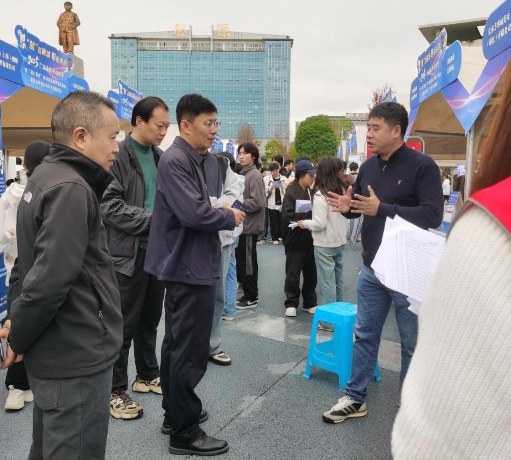 11月11日,学校2026届毕业生双选会在滨江校区小平广场成功举办,此次双选会为毕业生与用人单位搭建了高效精准的对接平台,电信学院党总支书记喻忠,党总支副书记、院长王凤领,专业带头人及有关科室负责人、就业干事等深入招聘现场了解企业招聘情况及学生求职情况。