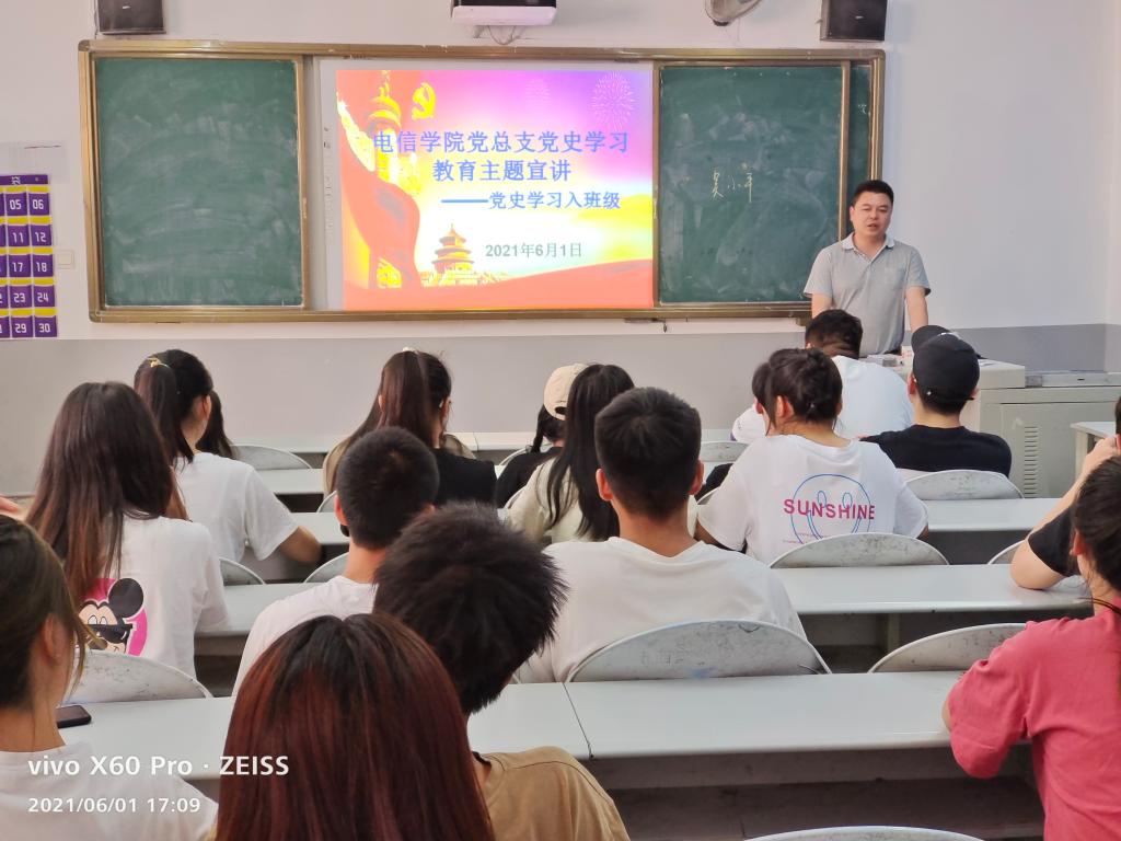 为广泛传播党史知识、弘扬党的光荣传统和优良作风,推动党史学习教育深入师生、深入基层、深入人心,电信学院党总支于6月1日面向班级开展了一次党史教育宣讲。此次宣讲活动一共有50多名学生参加,电信学院党总支书记吴小平做了主题为“中国共产党为什么‘能’”的宣讲。