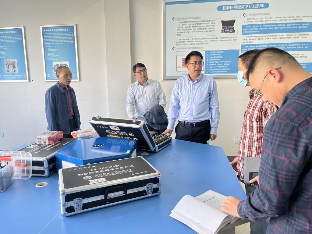 调研组在电信学院院长曾德贵的陪同下参观了物联网实验室和智能开发实训室,看望了新引进的高层次人才张进博士,慰问了参加技能训练大赛备赛的学生。随后,调研组与电信学院代表在致用楼315会议室召开座谈会。电信学院领导班子、高层次人才、专业负责人、教研室主任、教师代表和辅导员代表等分别就学院和学校发展进行汇报和建议。