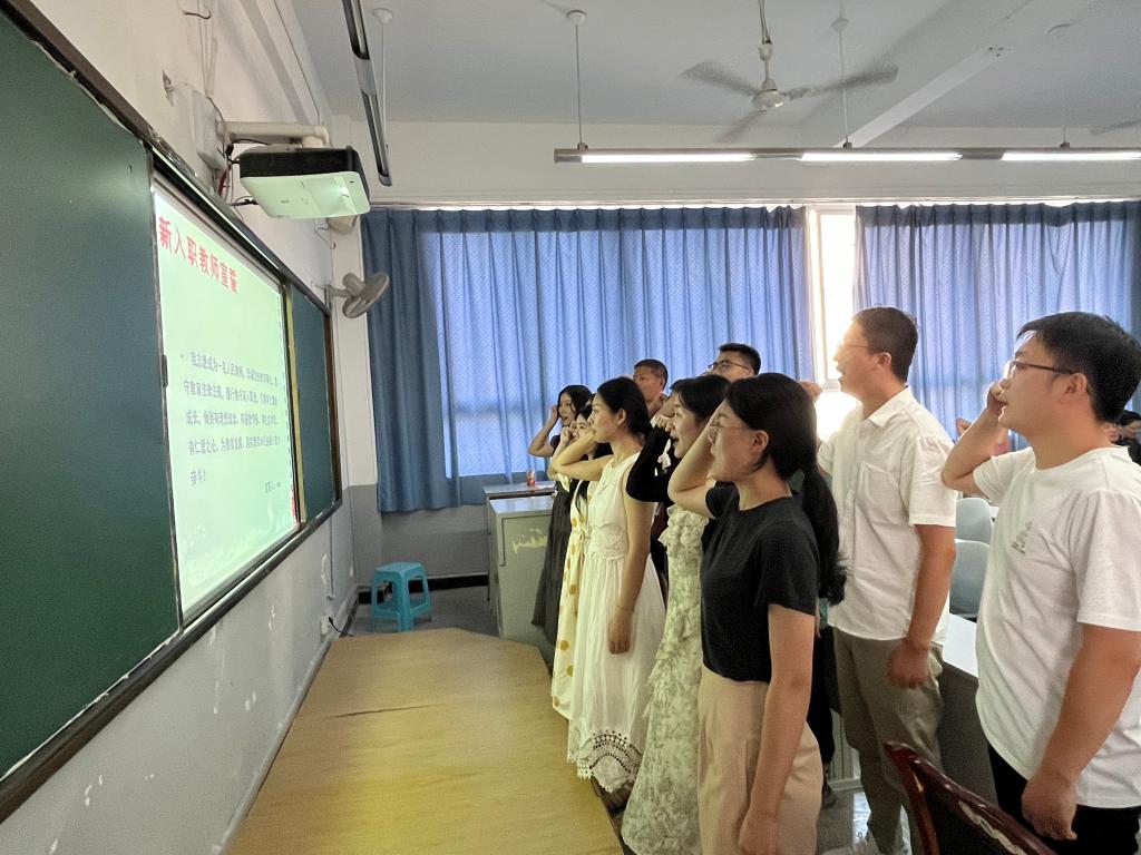 随后,在新入职老师代表蒋金洋同志的带领下,2022年、2023年新入职的12名教师进行了新入职教师宣誓。